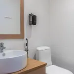 Gästerna erbjuds mediautrustning som TV, tillsammans med öppen spis. I badrummet finns även en separat toalett, ett badkar och en dusch.